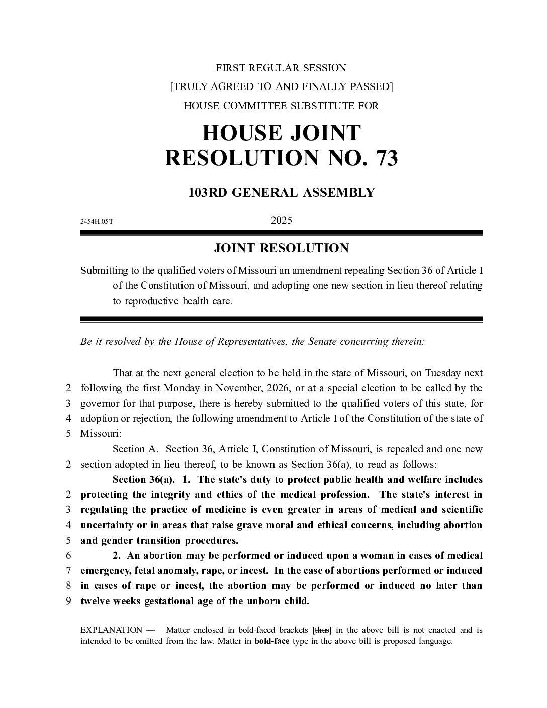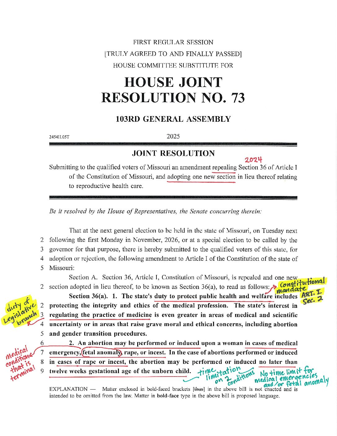 It is essential that all Missouri voters have the opportunity to fully review and understand the ramifications of this Amendment. The Missouri Constitution is the controlling legal authority over all forms of state and local law. The Missouri General Assembly cannot pass a bill that alters or bypasses the words of the Constitution. The General Assembly is proposing a repeal of Section 36 of Article I of the Constitution and adopting the new language above.